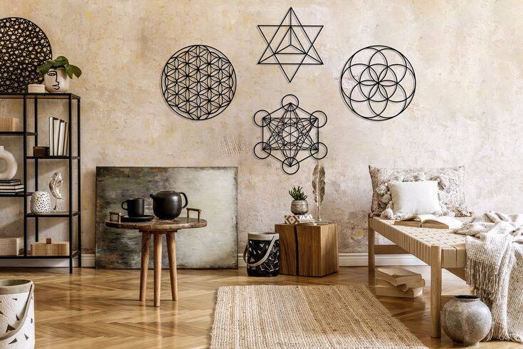 Symbolic and sacred meanings to certain geometric shapes and certain geometric proportions. It is associated with the belief of a divine creator of the universal geometer. These shapes and patterns in your interior not only look stunning but also connect you to the nature and spiritual essence.